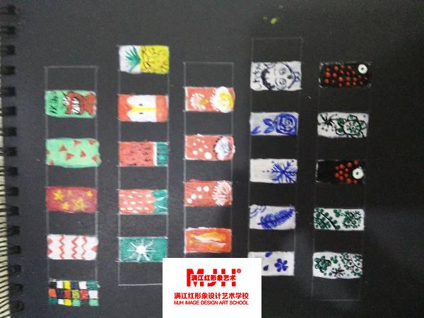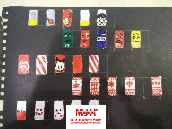 来美甲班两周了,学了很多东西,彩绘,线条,觉的很有意思,期待以后的学习。哈哈…