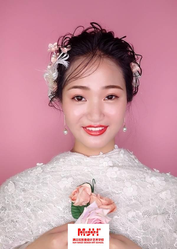 这是来新娘班的第一个星期,感觉这里的学习气氛更加的浓郁,对自己妆容和发型都不满意,以后需要努力了…