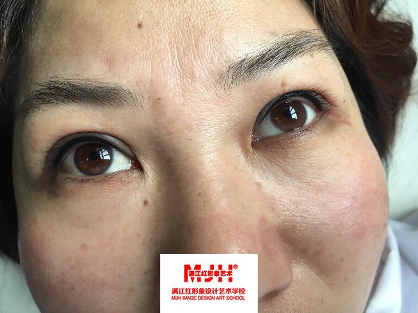 这周升到了高级班学的内容比初级班要细致主要是观摩真人实操和皮上练习为主这周学习了机器雾眉根雾眉根眉轻氧眉操作了一个美瞳线的真人实操也是第一次做美瞳线下周争取…